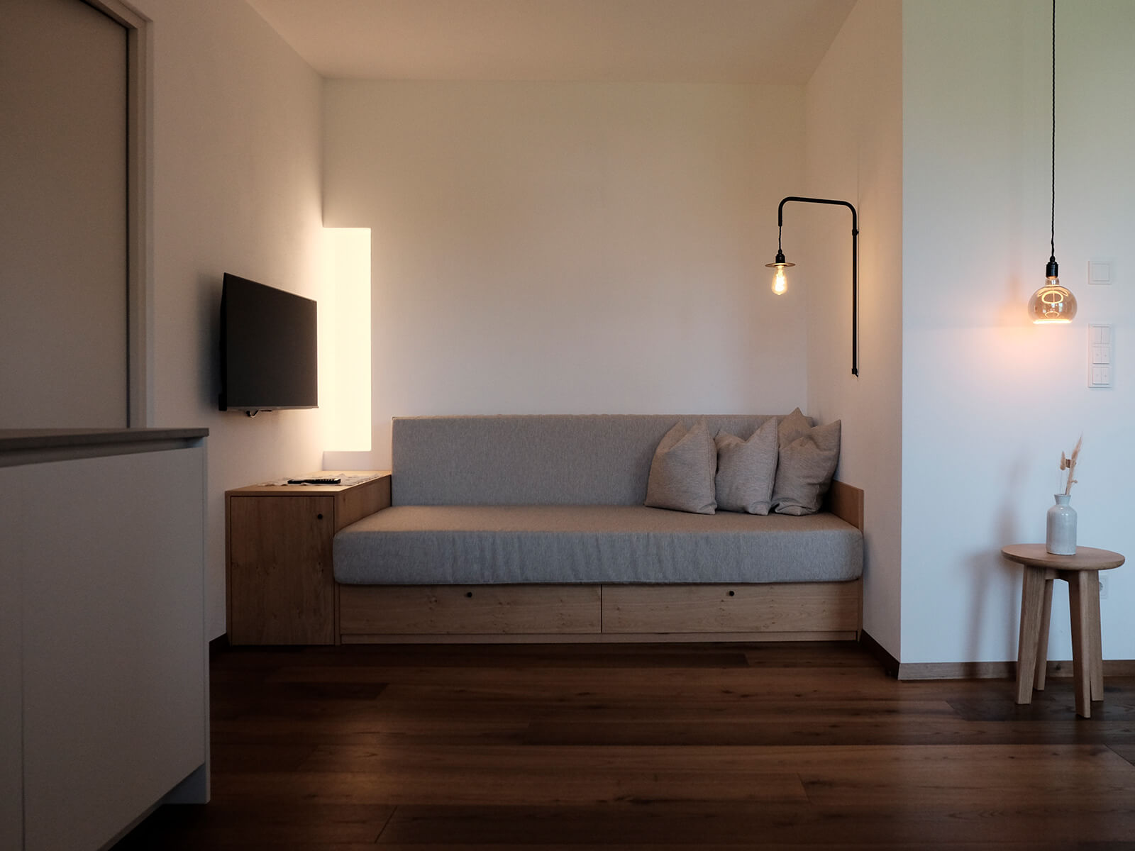 La casa per ospiti “Kaiserau Höfl” a Bolzano è stato trasformato in un progetto familiare da un’antica casa colonica in un elegante rifugio con suite e appartamenti moderni. Durante la ristrutturazione, l’obiettivo principale era preservare il fascino storico dell’edificio, creando al contempo un ambiente abitativo contemporaneo e accogliente.